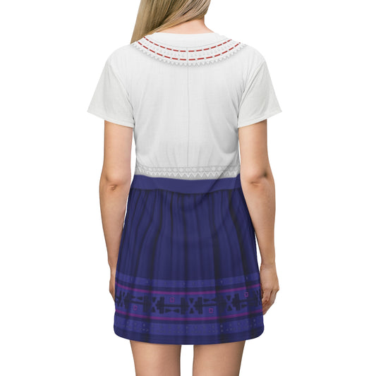 Encanto Short Sleeve Dress, Alma Madrigal Cosplay Costume