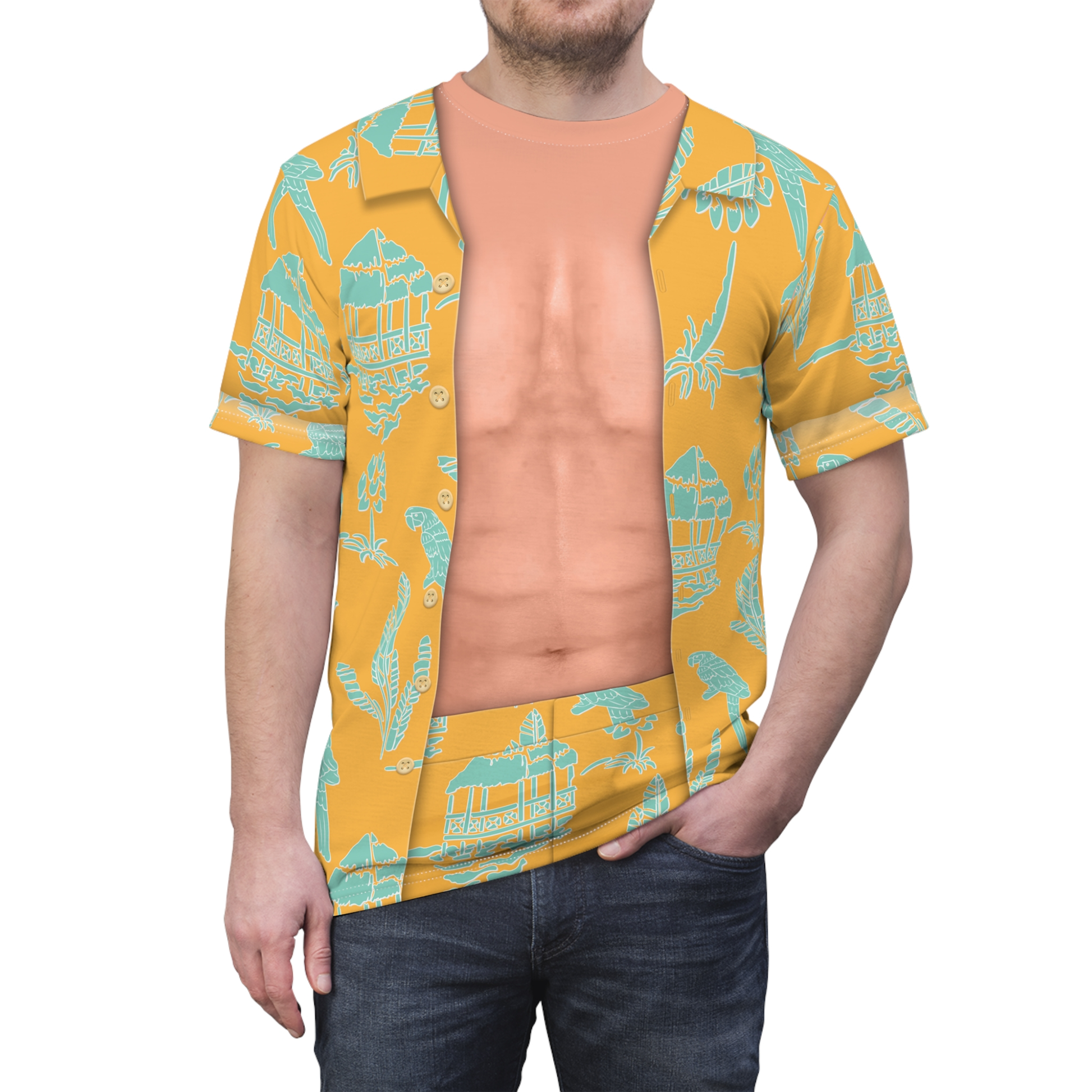 Simu Yellow Hawaiian Beach Shirt, Doll Movie Costume